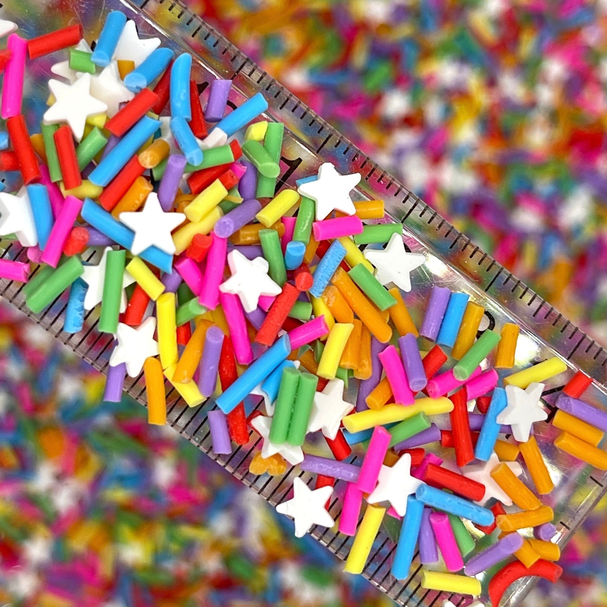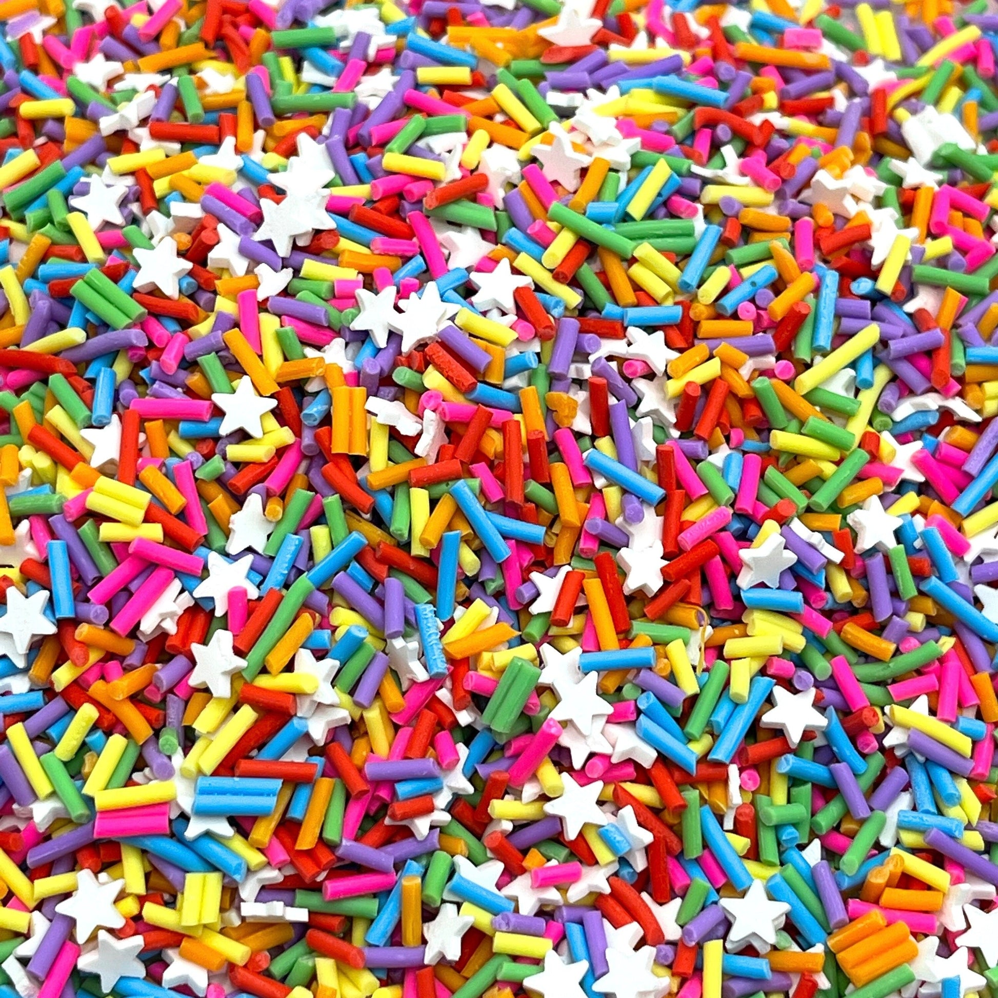 FAKE Rainbow Polymer Clay Sprinkles with White Star Mix (NOT EDIBLE) D8-15