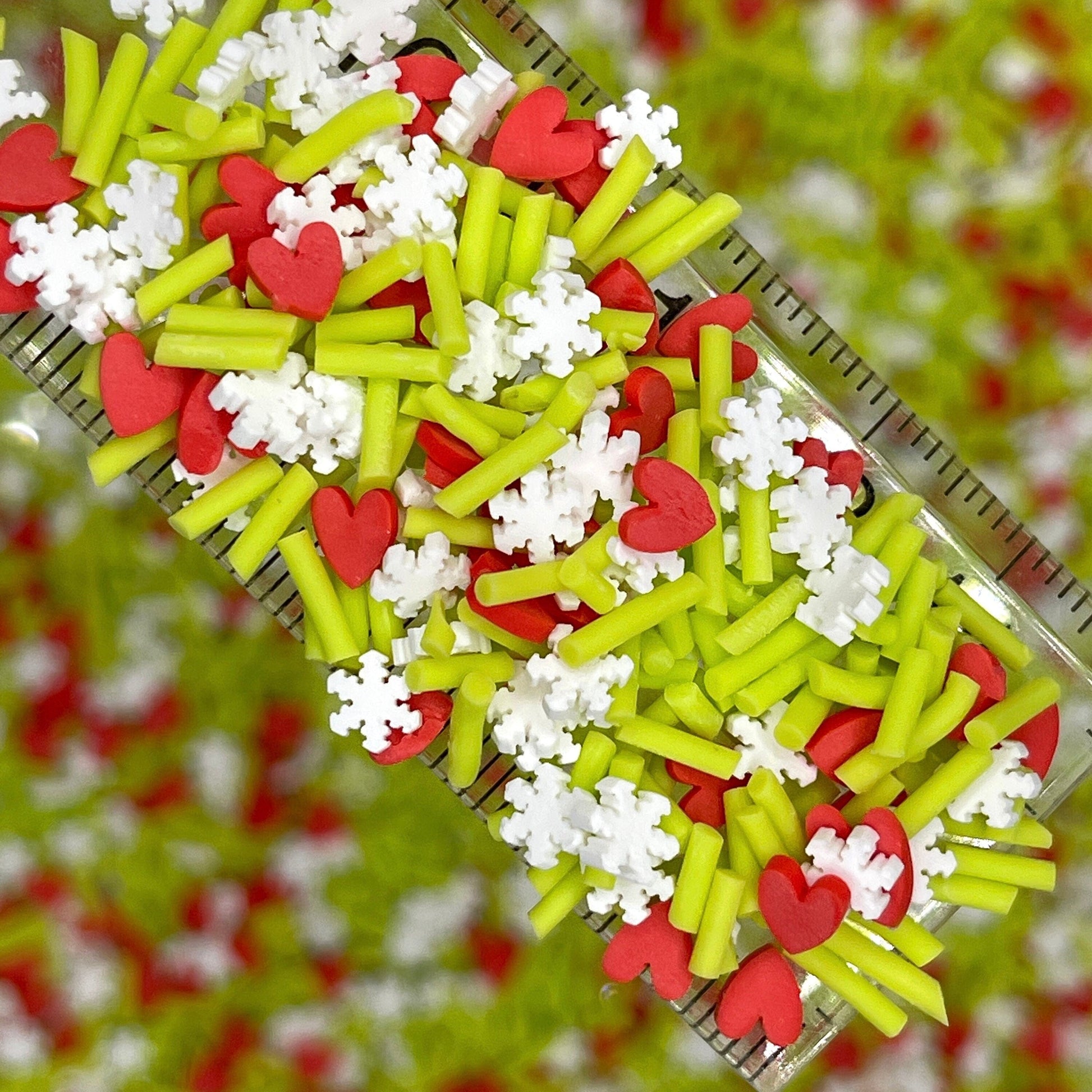 FAKE Red Heart Green Polymer Clay Sprinkle Mix (NOT EDIBLE) D7-08