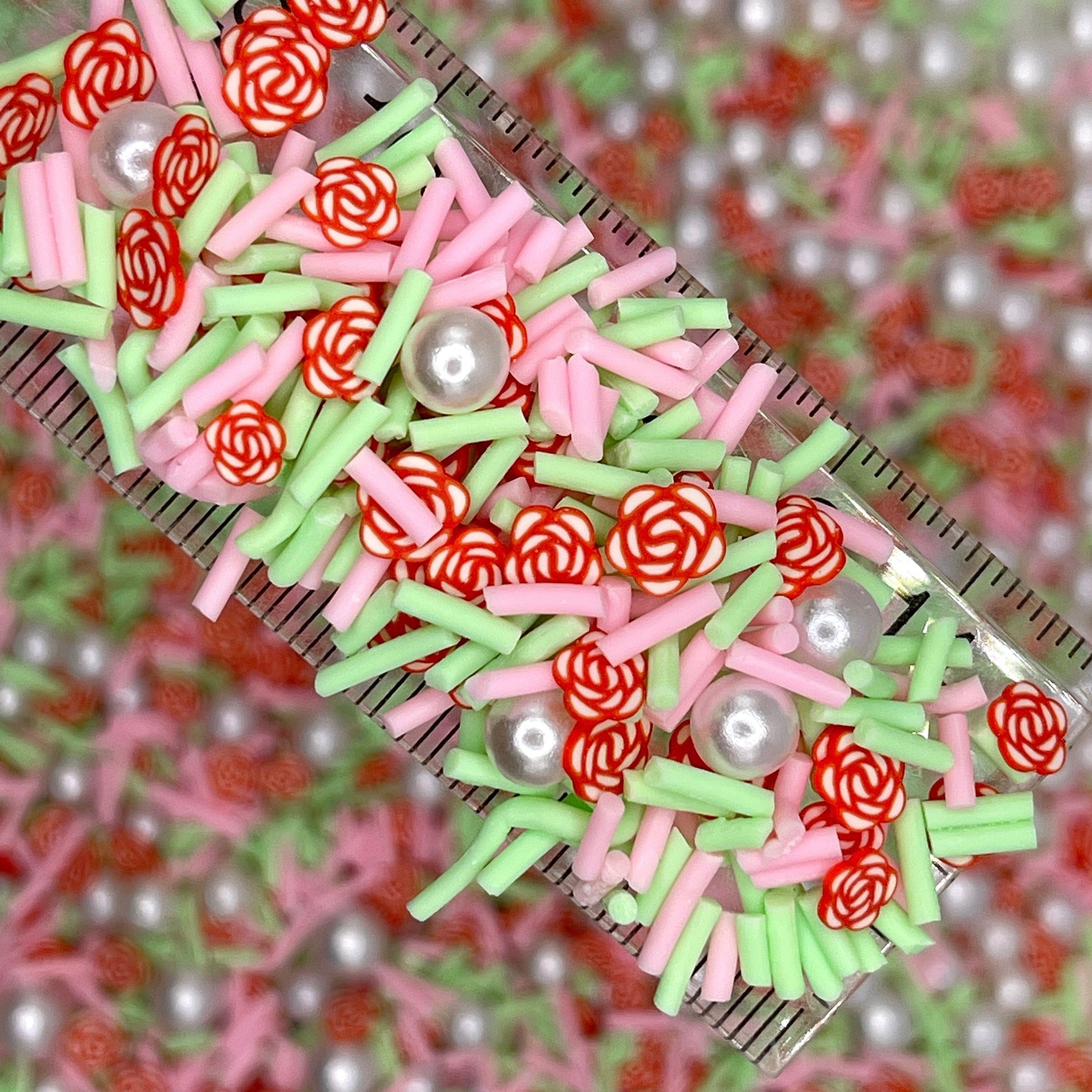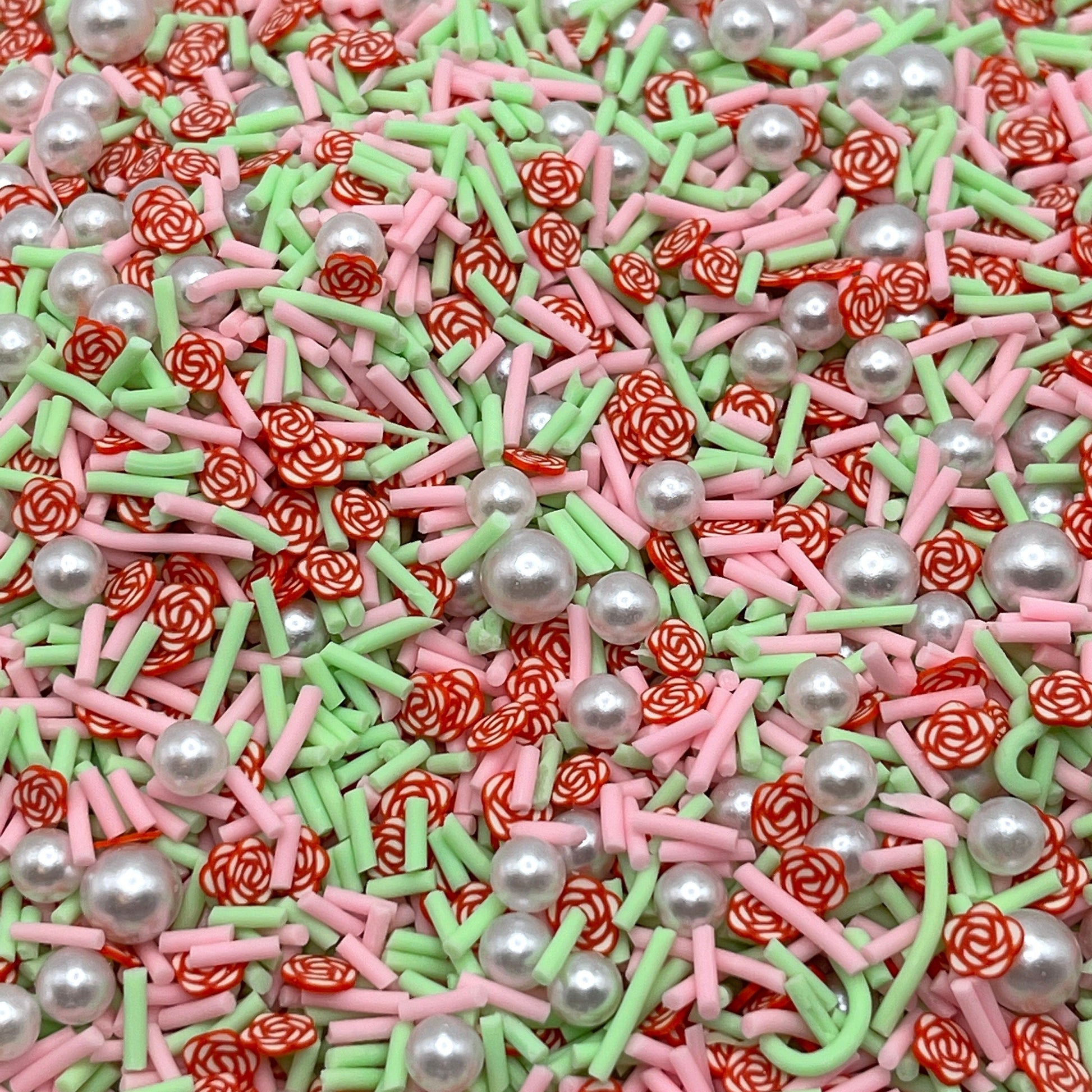 FAKE Red Rose with Pearls, Floral Polymer Clay Sprinkle Mix (NOT EDIBLE) D6-35