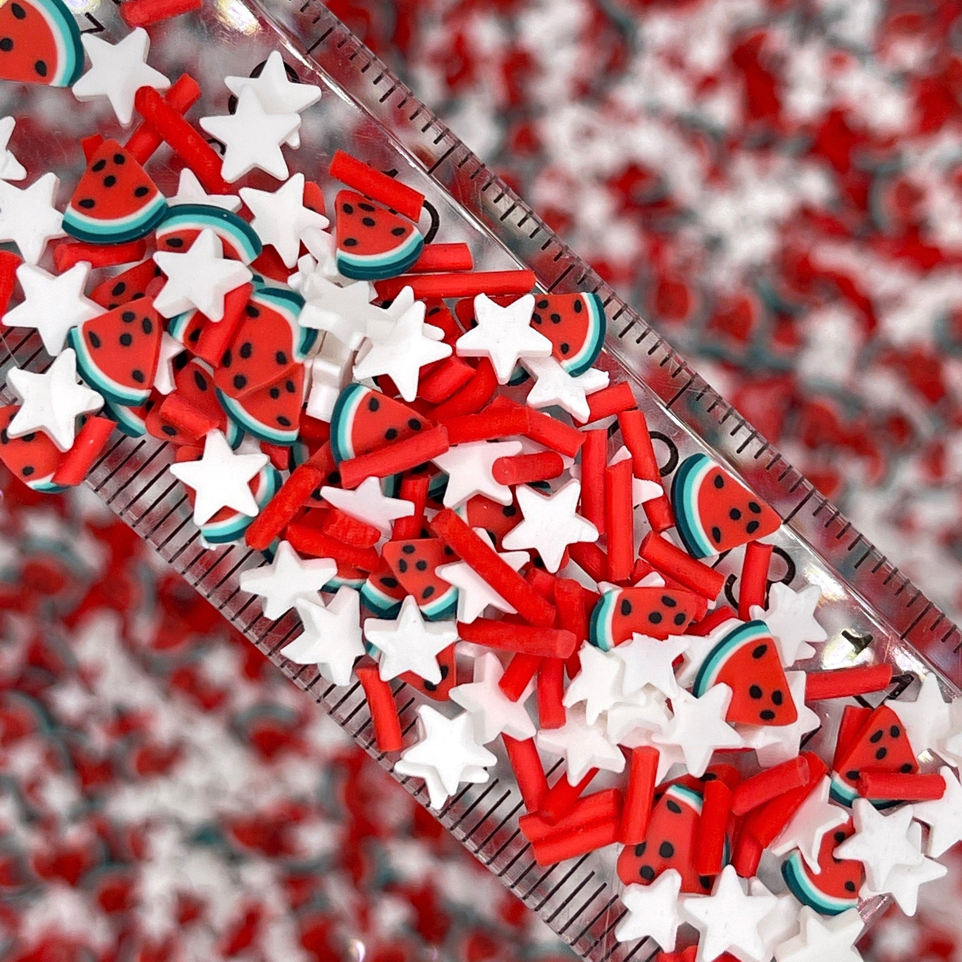 FAKE Red Watermelon Fruit Star Polymer Clay Sprinkle Mix (NOT EDIBLE) D10-30