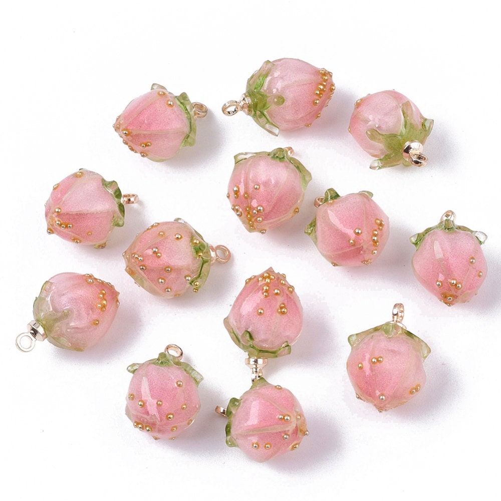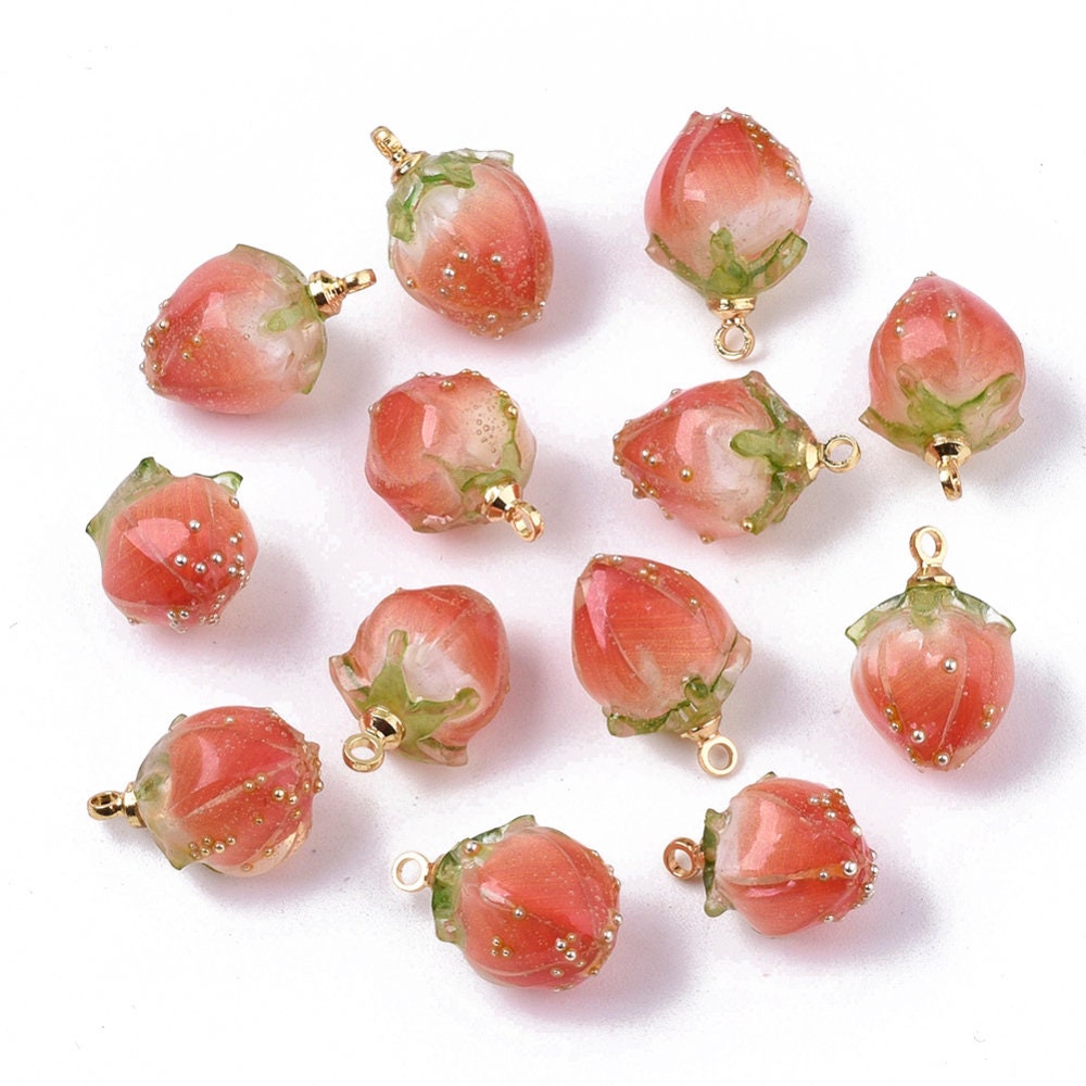 Resin Pink Red Blue Orange Hot Pink Strawberry Flower Charm (15mm x 10mm x 10mm)