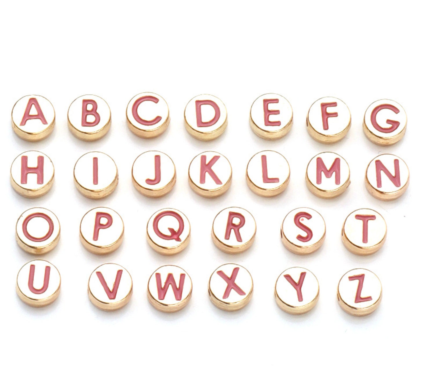 Rose Pink Metal Round Individual Letters Beads (8x3.5mm)