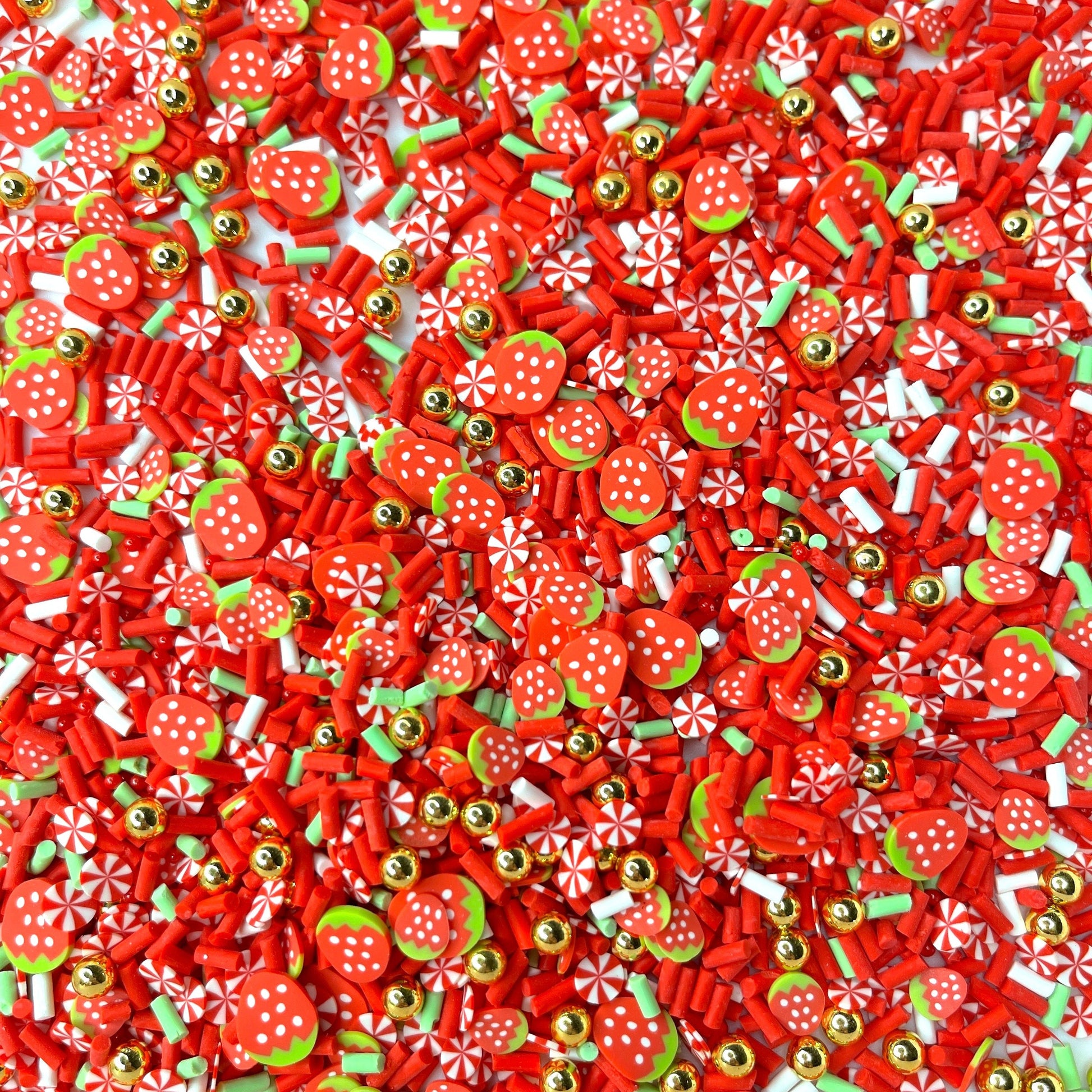 FAKE Strawberry Peppermint, Fruit Polymer Clay Sprinkle Mix (NOT EDIBLE) D48-08