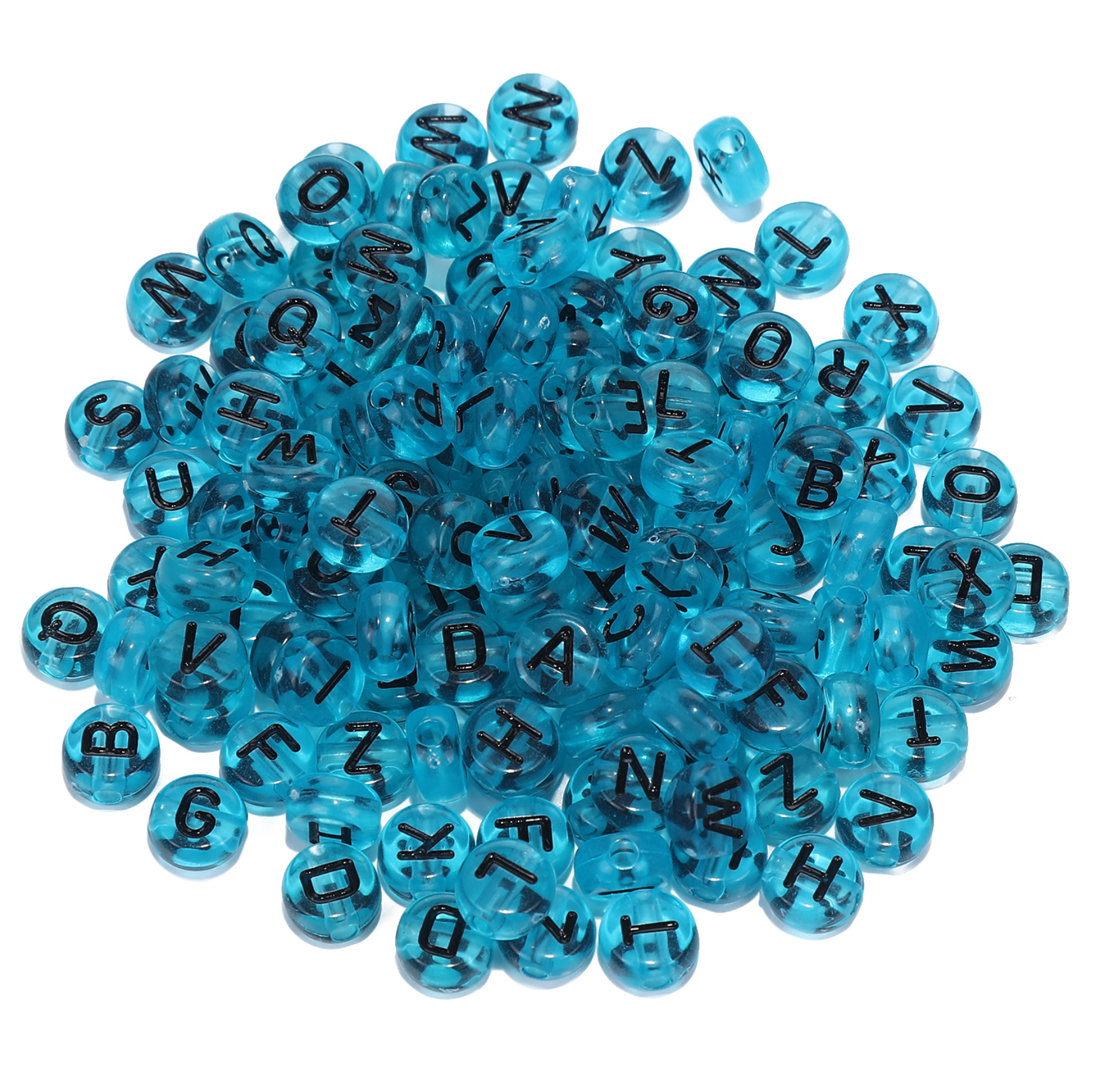 Translucent BLUE, Black Letter A-Z Alphabet Individual Beads (7MM)