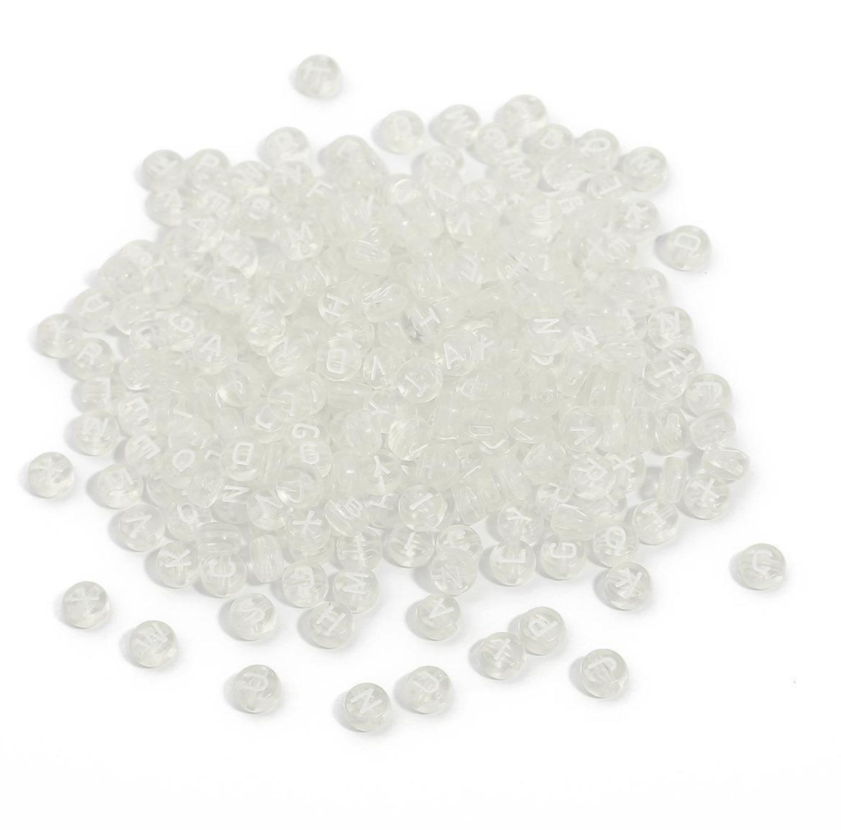 Translucent CLEAR, White Letter A-Z Alphabet Individual Beads (7MM)