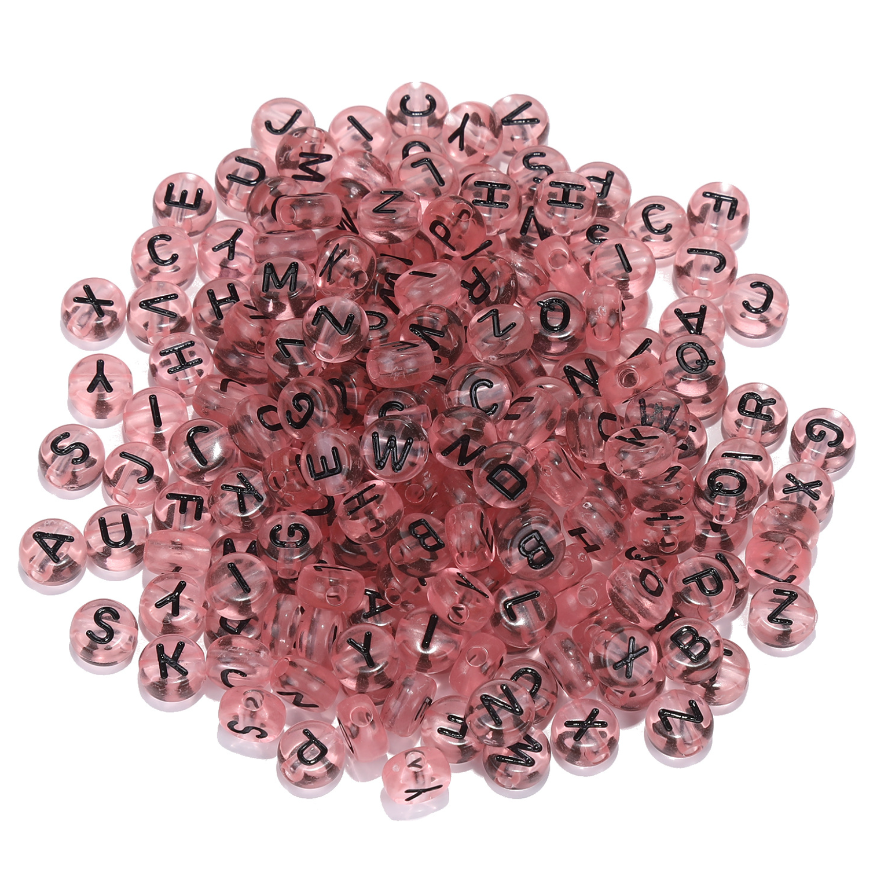 Translucent LIGHT PINK, Black Letter A-Z Alphabet Individual Beads (7MM)