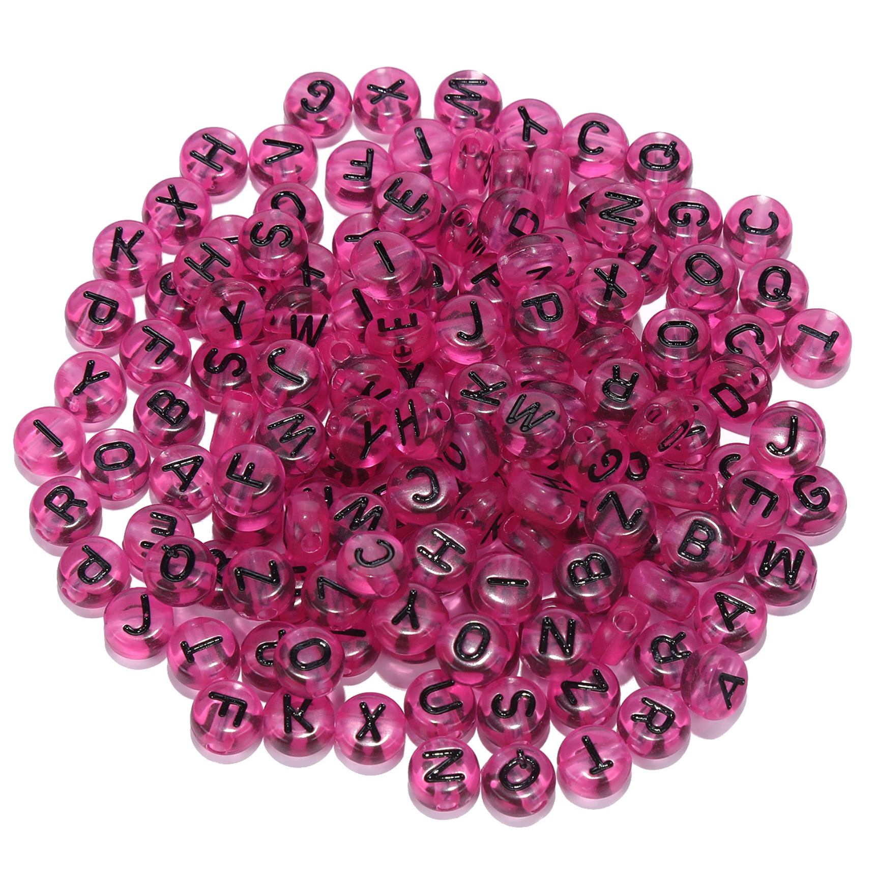 Translucent ROSE PINK, Black Letter A-Z Alphabet Individual Beads (7MM)