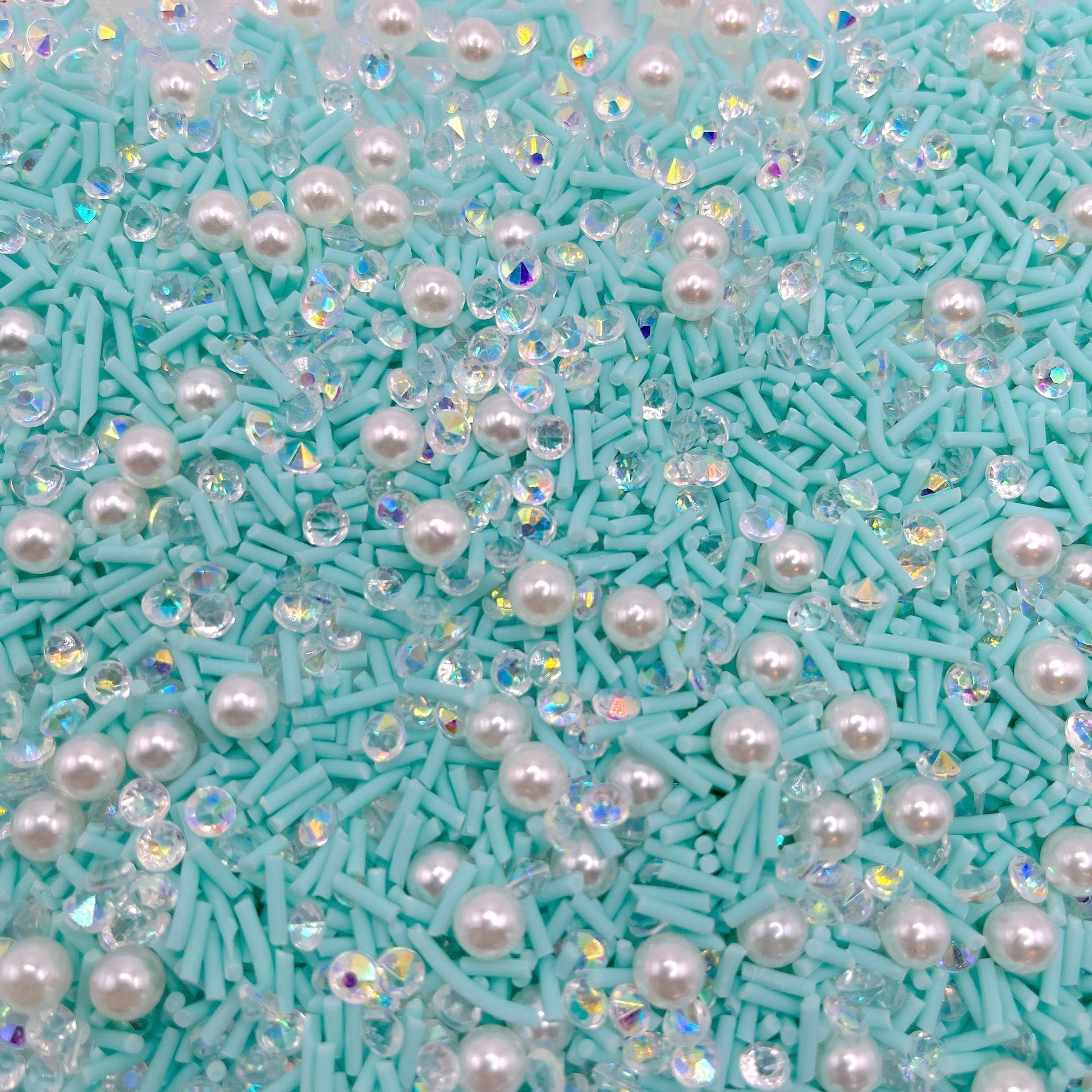 FAKE Turquoise Rhinestone Pearl Polymer Clay Sprinkle Mix (NOT EDIBLE) D3-25