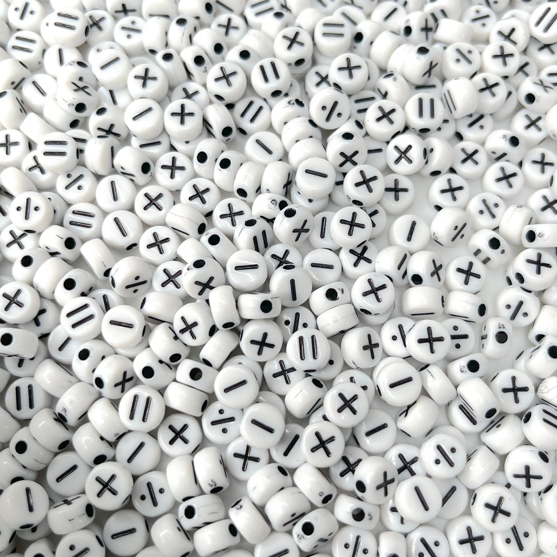 BULK 7MM White Flat Round Acrylic Mathematical Sign Symbol Beads