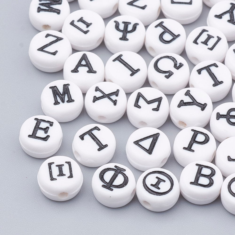 White Round Bead Black Greek Mixed Letter Acrylic Beads (4MM X 7MM)