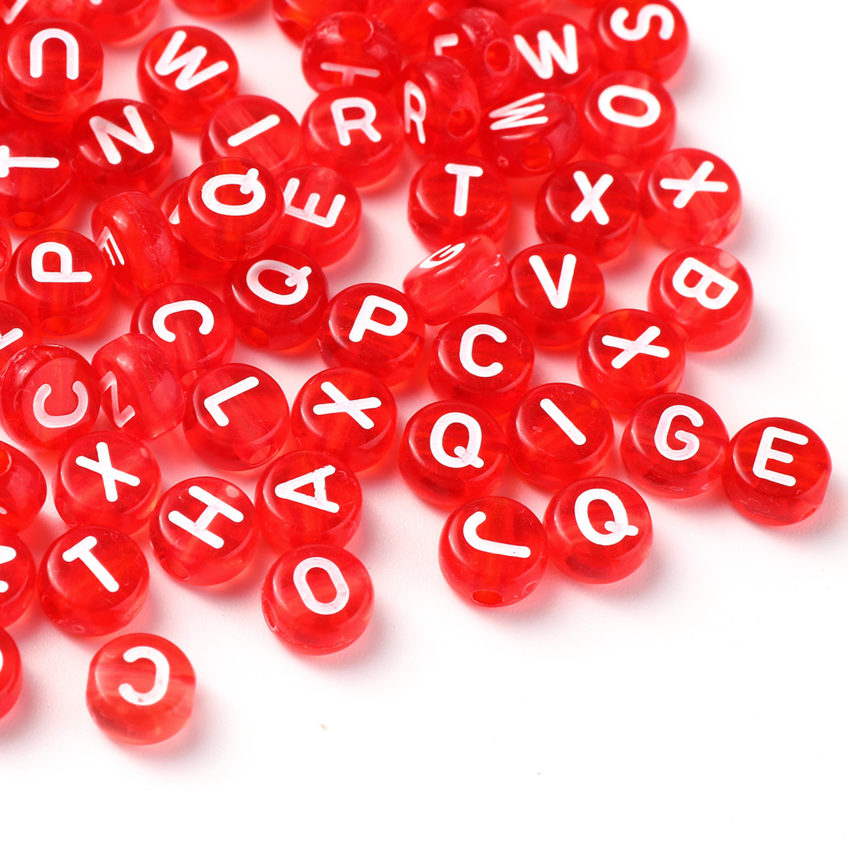 Translucent RED, White Letter A-Z Alphabet Individual Beads (7MM)